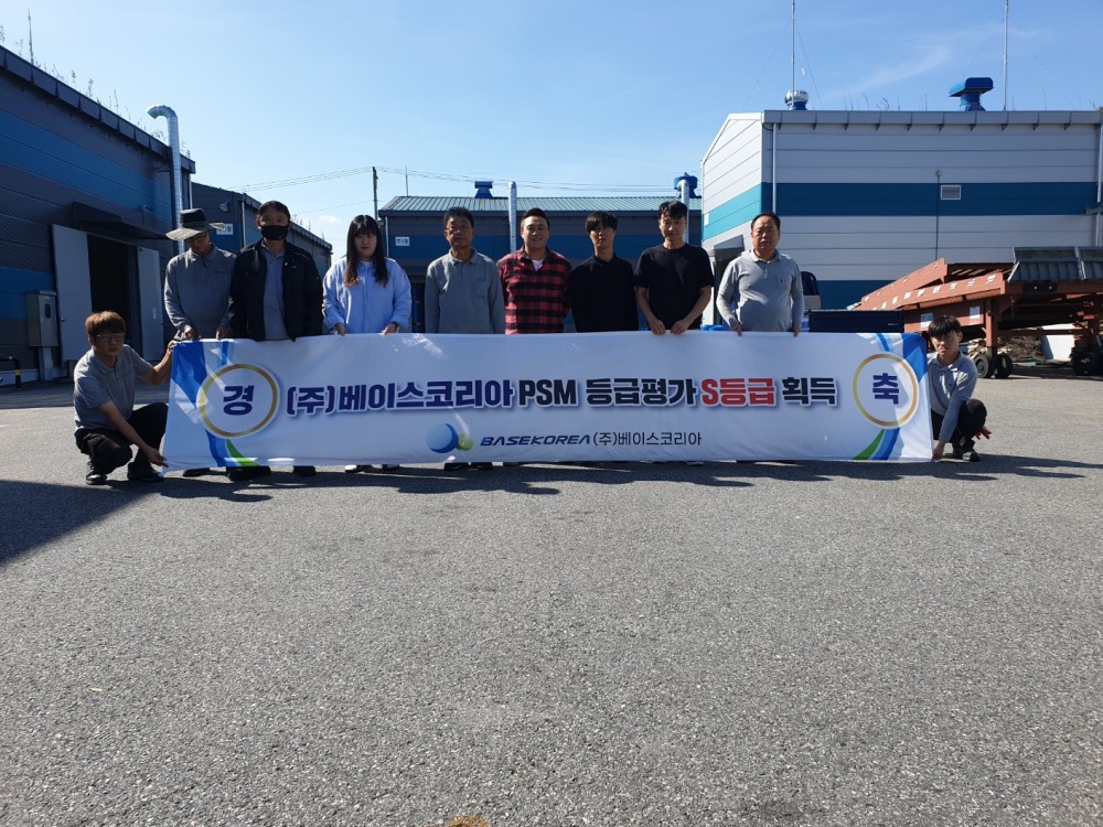 (주)베이스코리아는 2023.08.16~2023.08.18 까지 진행한 공정안전관리(PSM)이행상태 평가에서 S등급을 획득 하였습니다.